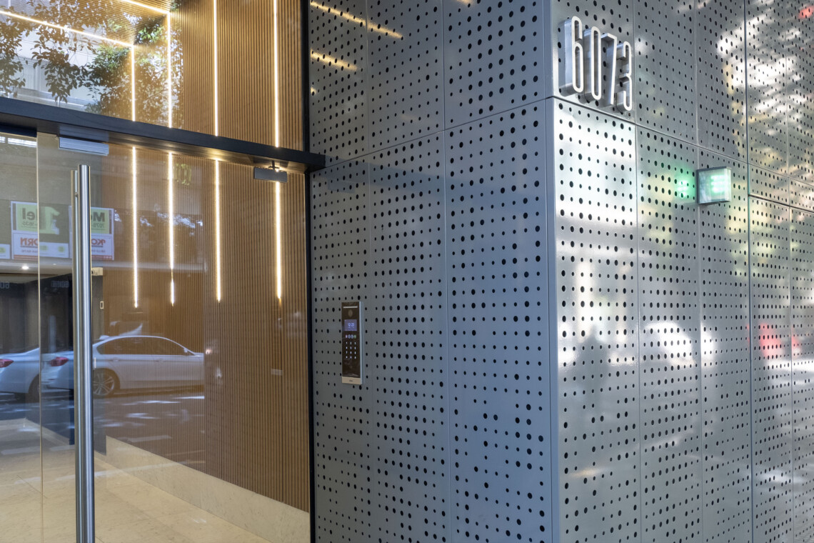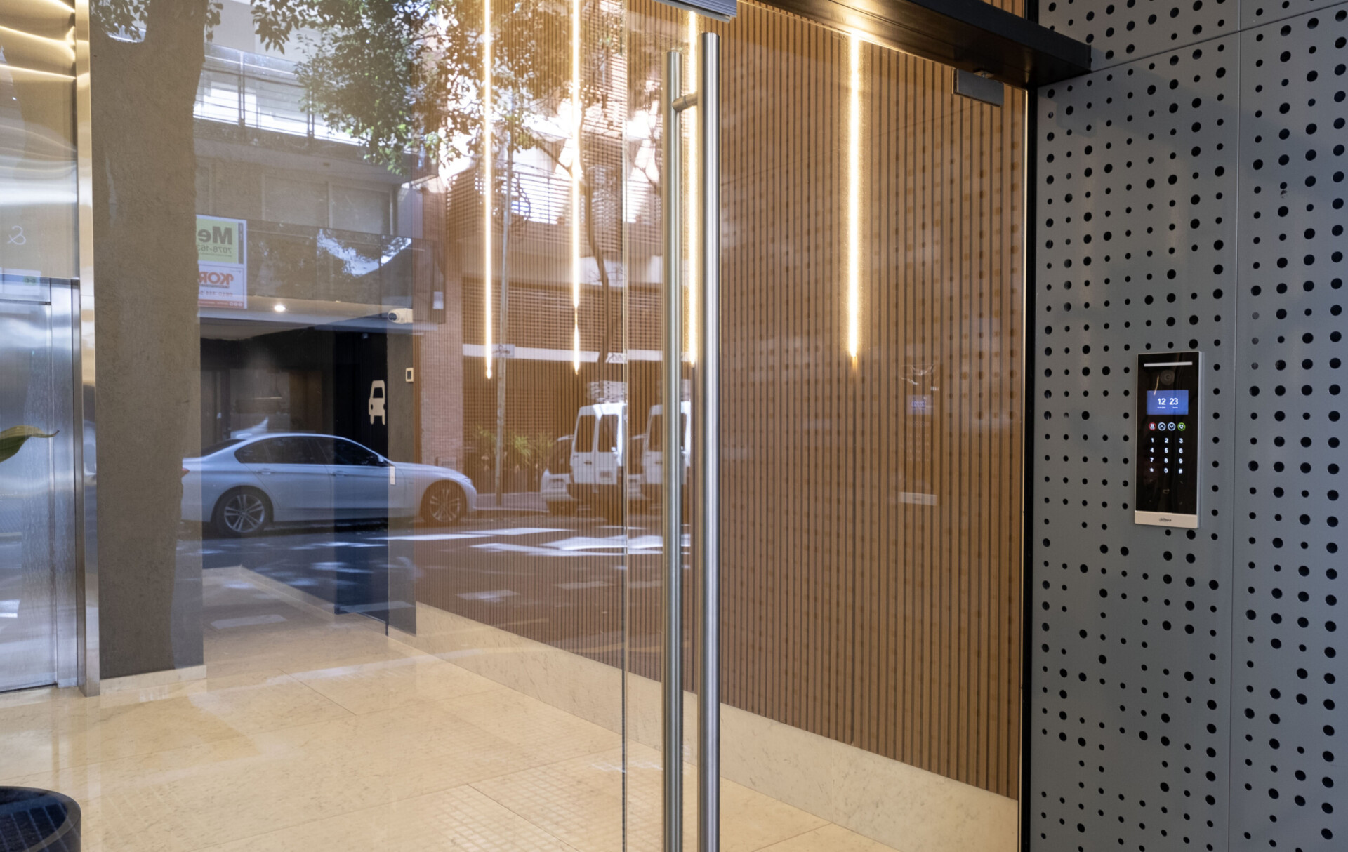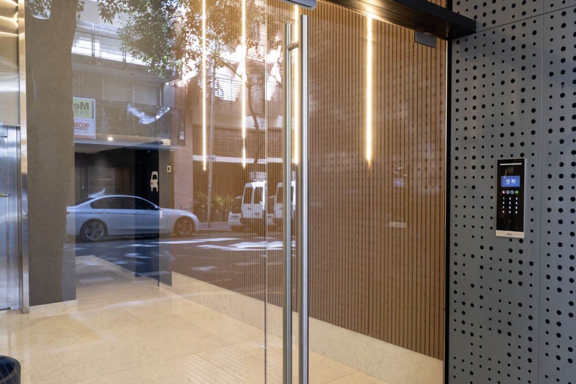La puerta del departamento se abre con un código de acceso que enviamos nosotros. Esto genera mayor seguridad para cada huésped.